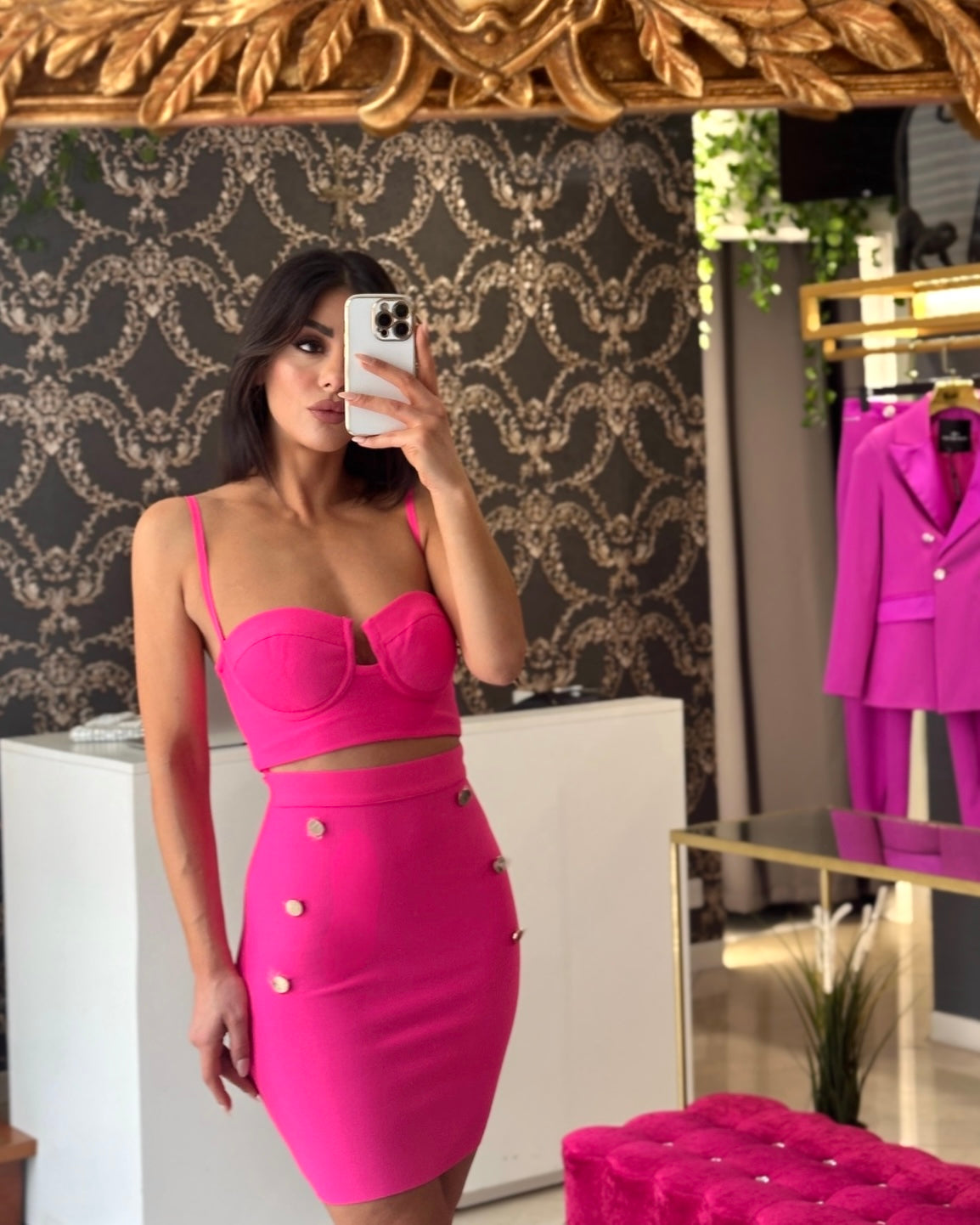 Abito bandage con coppe preformate,spalline regolabili,cerniera a scomparsa sul retro e applicazioni oro.