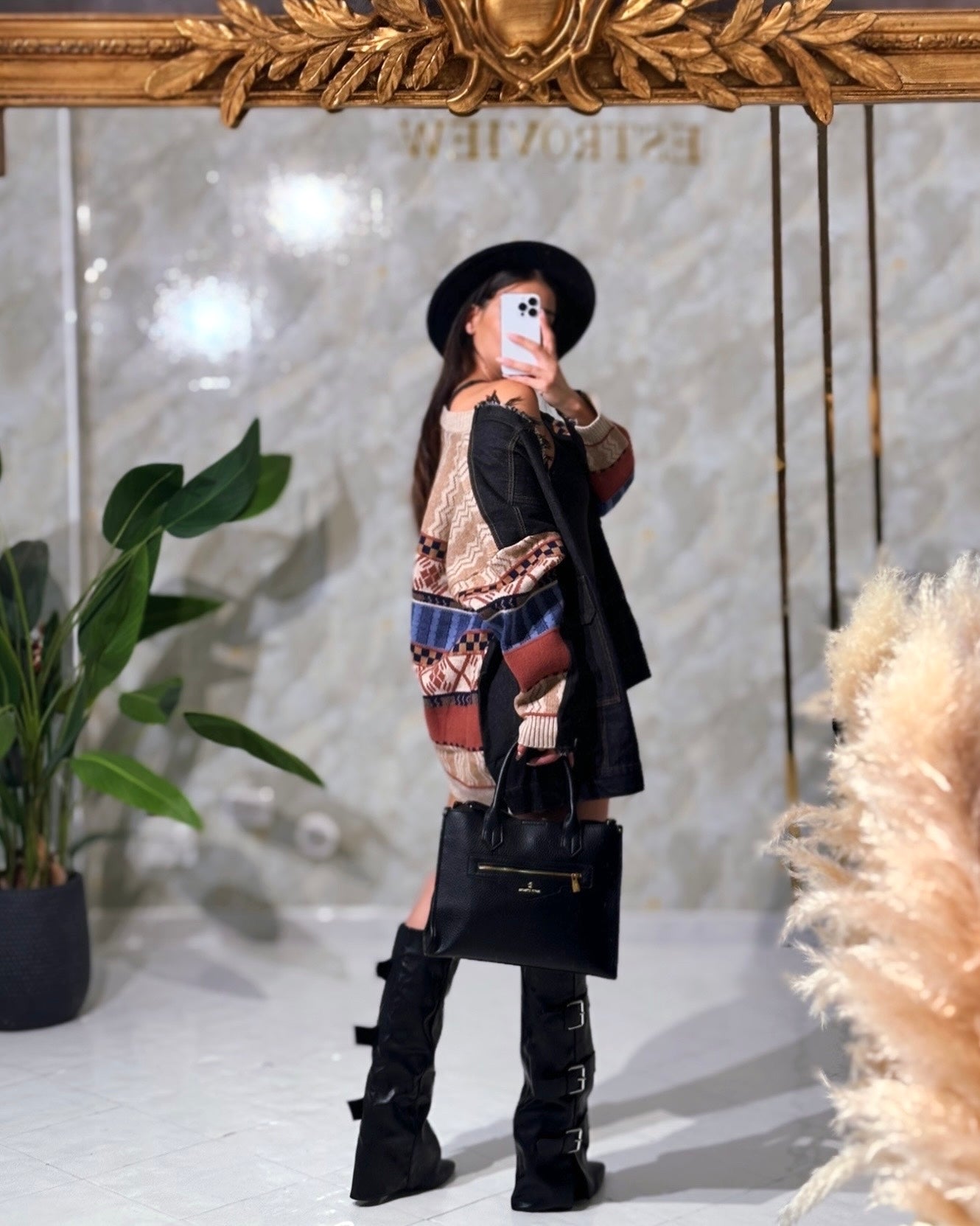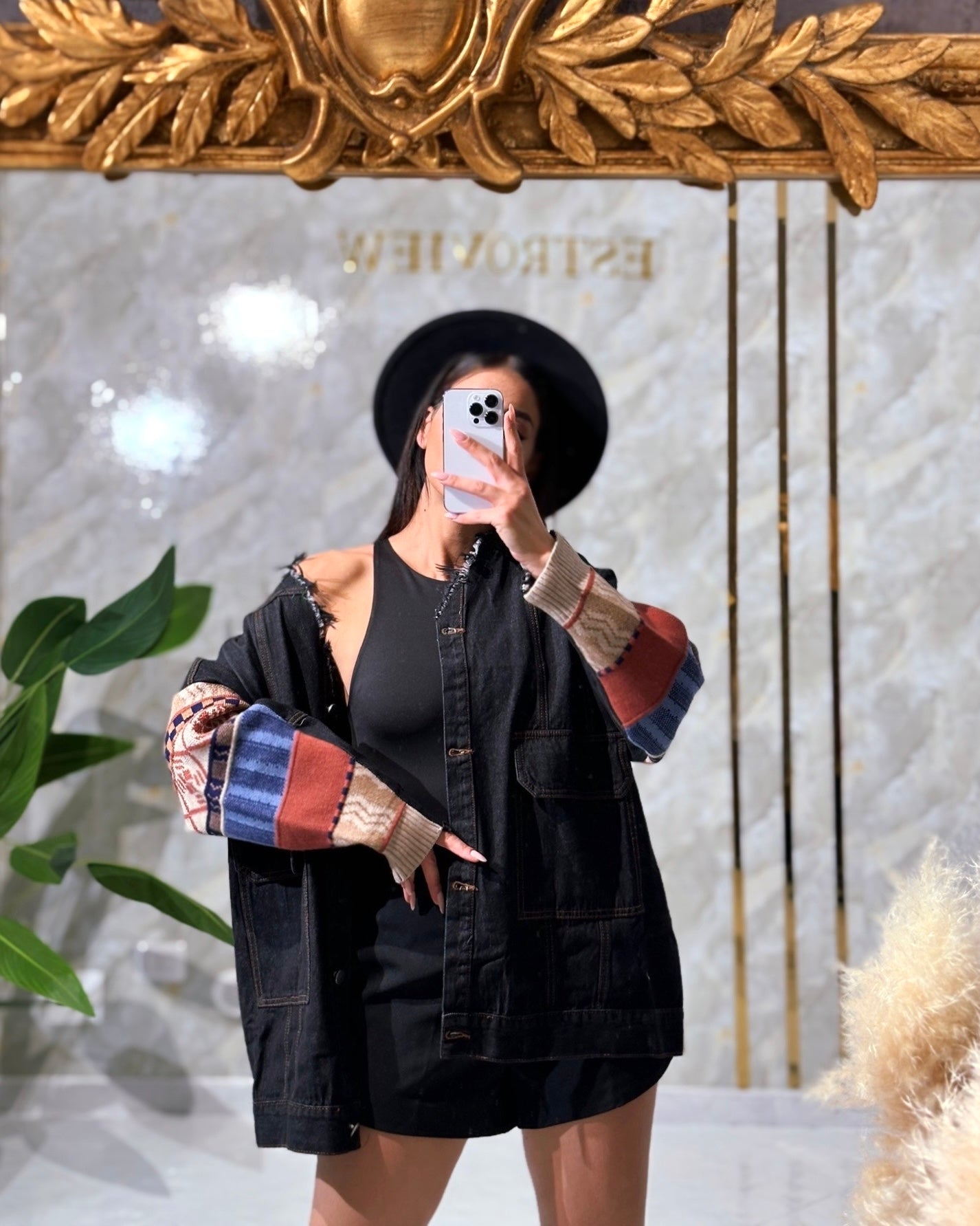 Giacca oversize lana+denim nero